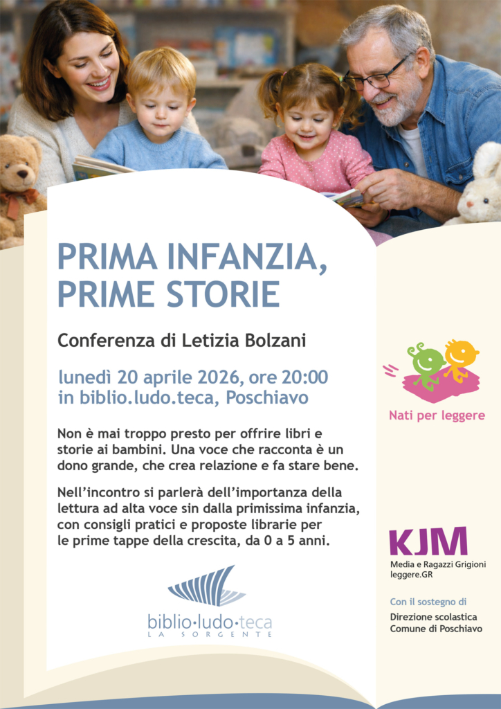 La conferenza si svolgerà lunedì 20 aprile 2026, alle ore 20.00, in biblio.ludo.teca a Poschiavo, e sarà tenuta da Letizia Bolzani, esperta di letteratura per l’infanzia, che guiderà i partecipanti in un percorso coinvolgente e ricco di spunti concreti.